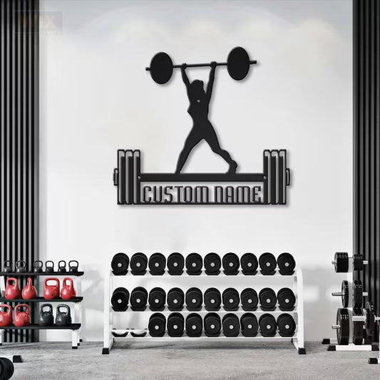 Custom Name Female Bodybuilder For Gym Room WeightLifting, Metal Wall Signs With RGB Led Light - WixDecor