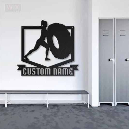 Custom Name Female Bodybuilder Metal Wall Signs With RGB Led Light - WixDecor
