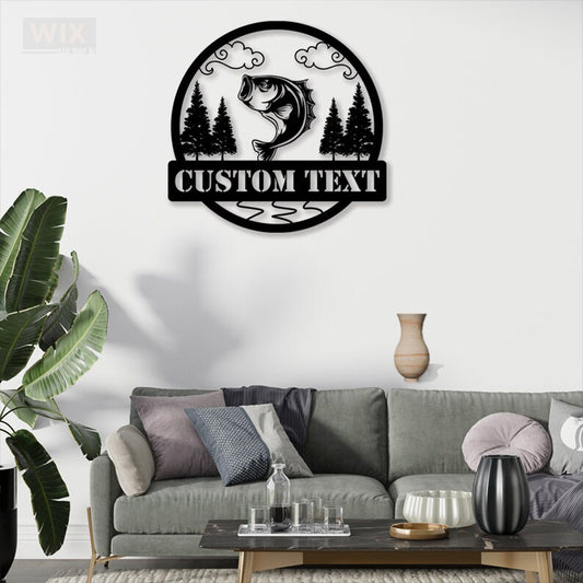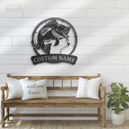 Custom Name Largemouth Bass Fish Name Sign Decoration For Room Metal Wall Signs With RGB Led Light - WixDecor