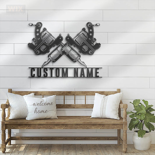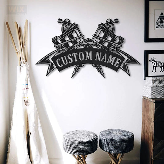 Regular price $59.80 USDSale price $59.80 USD Regular priceUnit price perCustom Name Crossed Tattoo Machine Metal Wall Signs With RGB Led Light - WixDecor