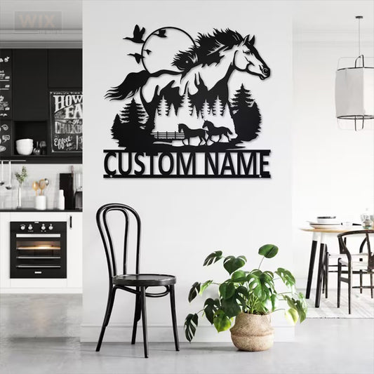 Custom Name Horse Jumping Name Sign Decoration For Room, Metal Wall Signs With RGB Led Light