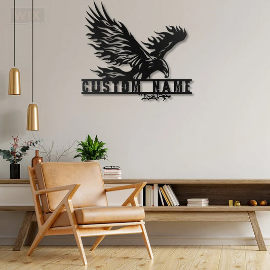Custom Name Eagle Name Sign Decoration For Room, Metal Wall Signs With RGB Led Light -