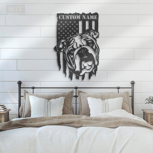 Regular price $59.80 USDSale price $59.80 USD Regular priceUnit price perPersonalized English Bulldog US Flag, Metal Wall Signs With RGB Led Light - WixDecor