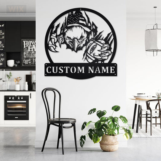 Regular price $59.80 USDSale price $59.80 USD Regular priceUnit price perPersonalized US Eagle Football, Metal Wall Signs With RGB Led Light - WixDecor