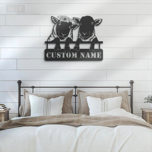 Personalized Funny Valentine Couple Sheep Love Farmhouse Metal Wall Signs With RGB Led Light - WixDecor