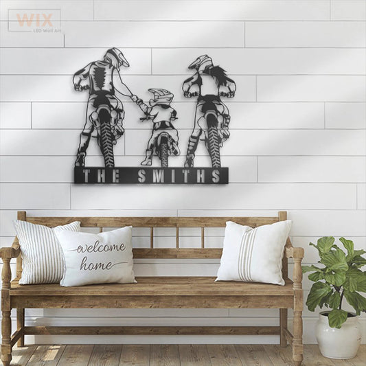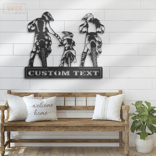 Personalized Family Motocross Biker, Metal Wall Signs With RGB Led Light - WixDecor