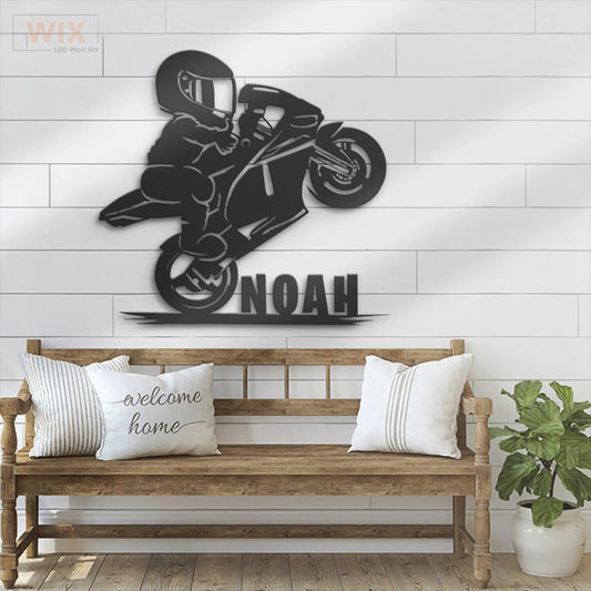 Personalized Motocross Biker, Metal Wall Signs With RGB Led Light - WixDecor