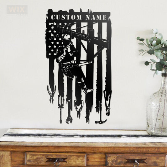 Custom Name Lineman Gifts Metal Wall Signs With RGB Led Light