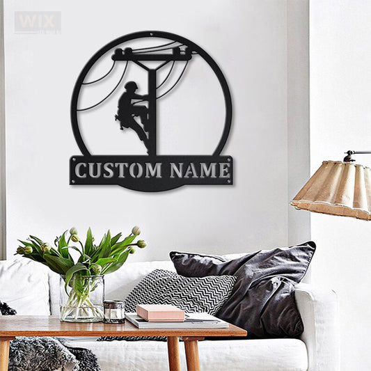 Custom Name Lineman Job Name Sign Metal Wall Signs With RGB Led Light
