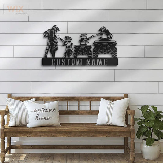 Personalized Family ATV Quad Motocross Biker, Metal Wall Signs With RGB Led Light