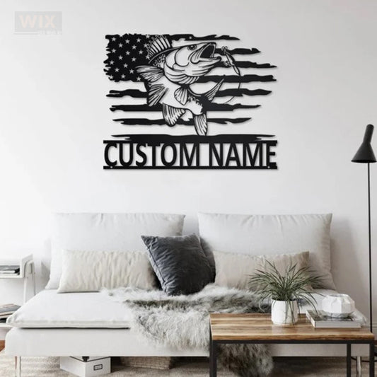 Personalized US Walleye Fish Metal Wall Signs With RGB Led Light - WixDecor