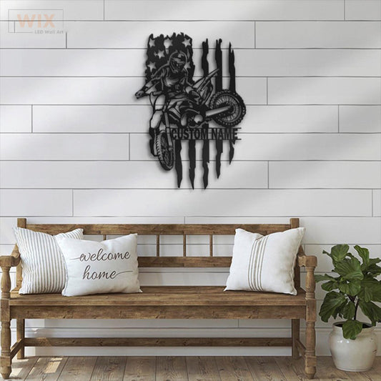 Personalized US Motocross Biker, Metal Wall Signs With RGB Led Light - WixDecor