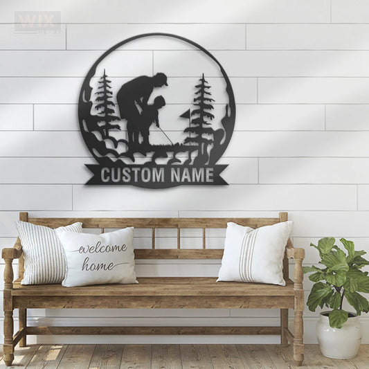 Personalized Father Son Golfing Metal Wall Art LED Light, Metal Wall Signs With RGB Led Light - WixDecor