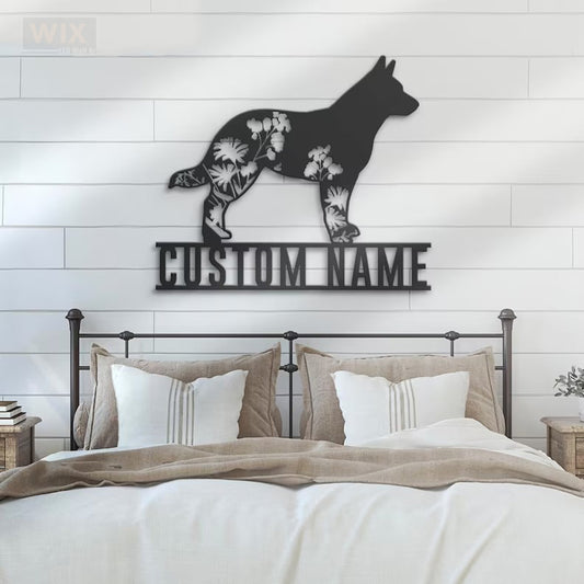 Custom Name Flower Dog Lover Name Sign Home Decor, Metal Wall Signs With RGB Led Light - WixDecor