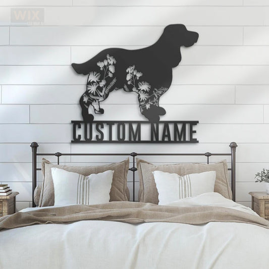 Personalized FLoral English Springer Spaniel Metal Wall Signs With RGB Led Light - WixDecor