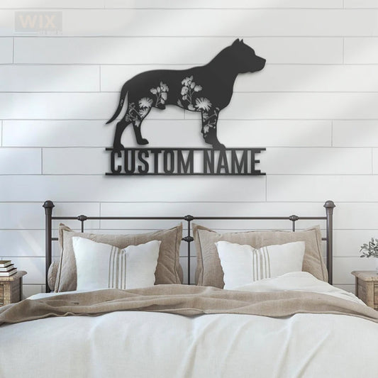 Custom Name FLoral Staffordshire Bull Terrier Metal Wall Signs With RGB Led Light - WixDecor