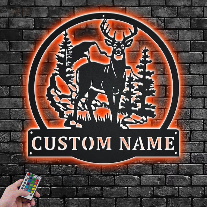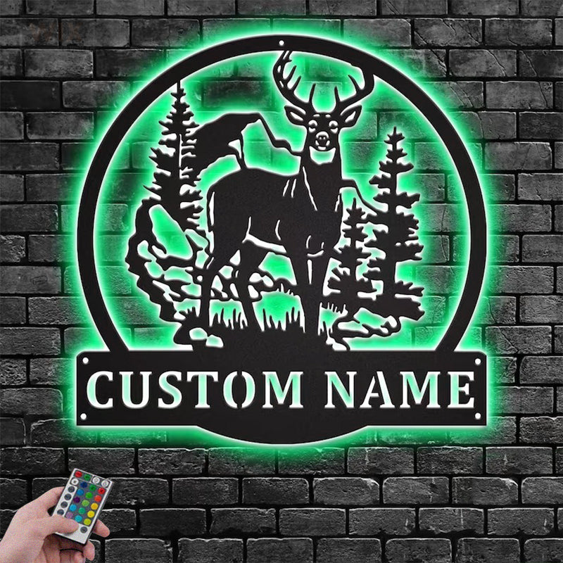 Personalized Deer And Mountain Metal Wall Signs With RGB Led Light - WixDecor